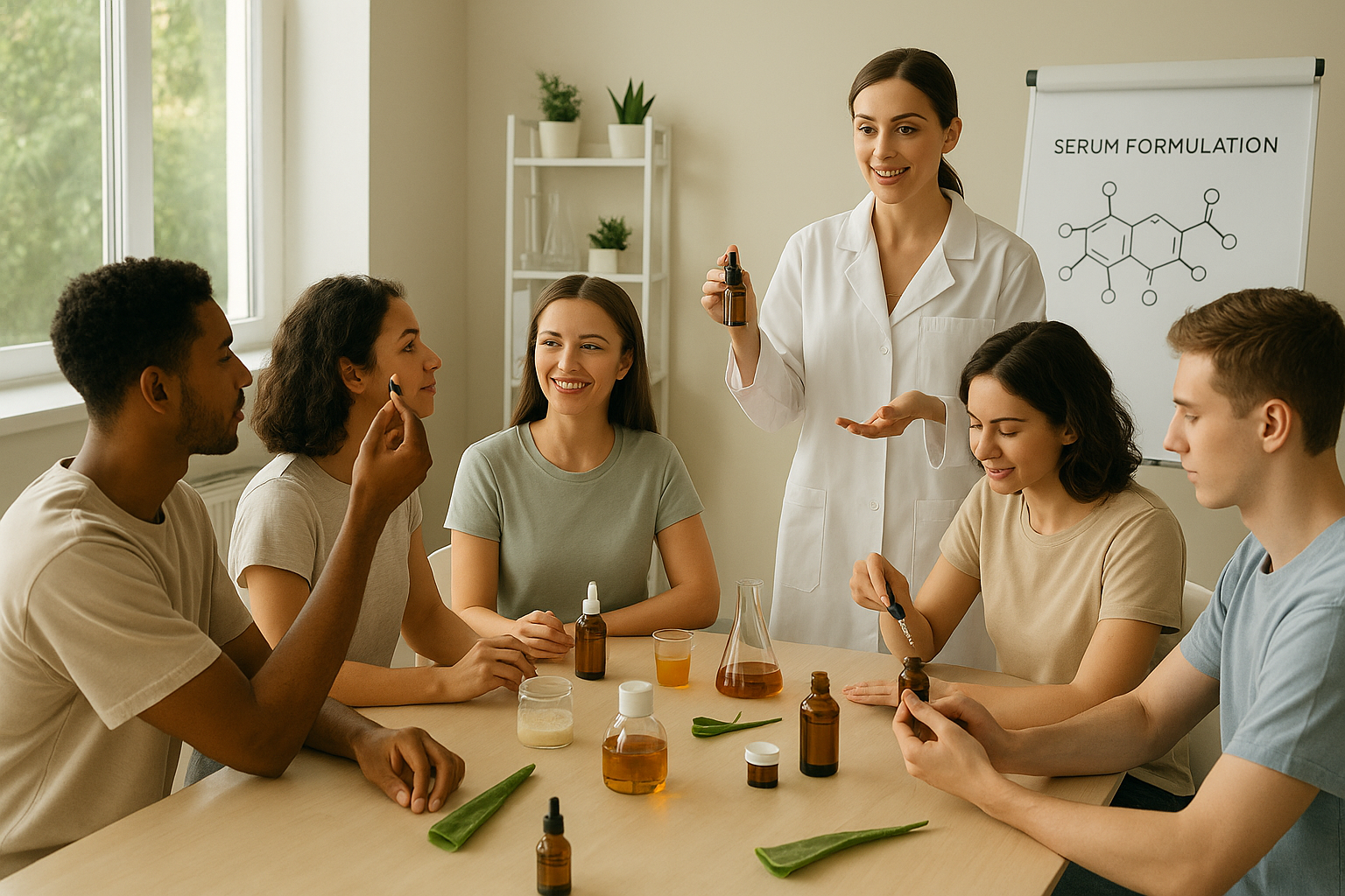 Morning workshop: assembling personal skincare sets based on tested formulas. Final Q&A, certificate distribution, and networking.